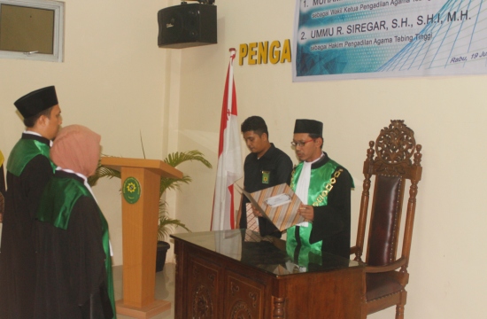 Ketua Pengadilan Agama Tebing Tinggi, Rosyid Mumtaz, S.HI., M.H., melantik wakil ketua PA Tebing Tinggi beserta seorang hakim lainnya pada Rabu, 19 Juni 2019. Acara pelantikan dan sumpah jabatan tersebut dilaksanakan di ruang utama pengadilan dan diikuti oleh seluruh pegawai beserta tamu undangan.