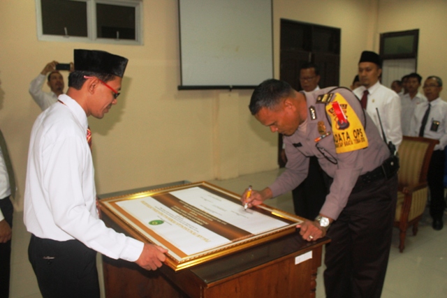 Penandatanganan Piagam Pencanangan Zona Integritas oleh Kapolres Tebing Tinggi dalam hal ini diwakili (foto oleh thoha)