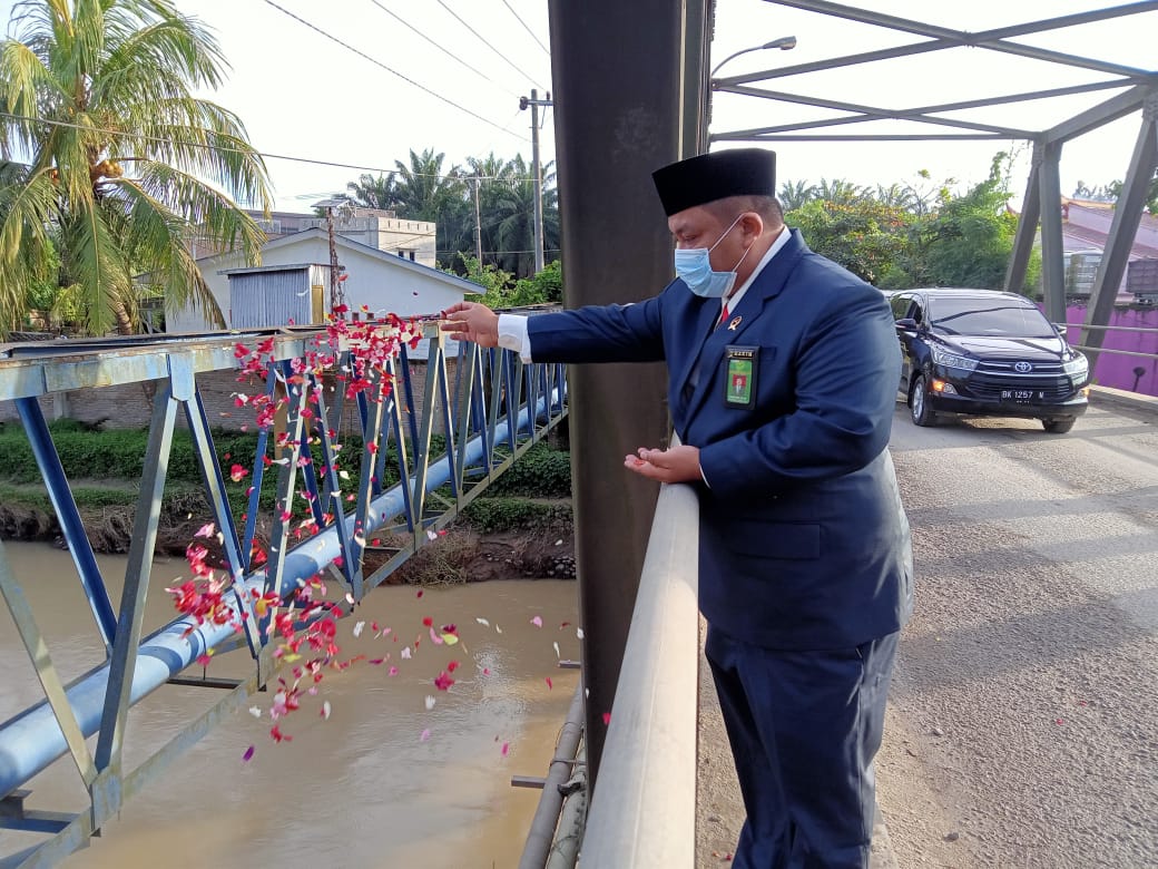 Selanjutnya melakukan tabur bunga di jembatan gantung dimana terjadinya peristiwa berdarah tersebut, yang terletak di Kecamatan Bulian, Kota Tebing Tinggi.