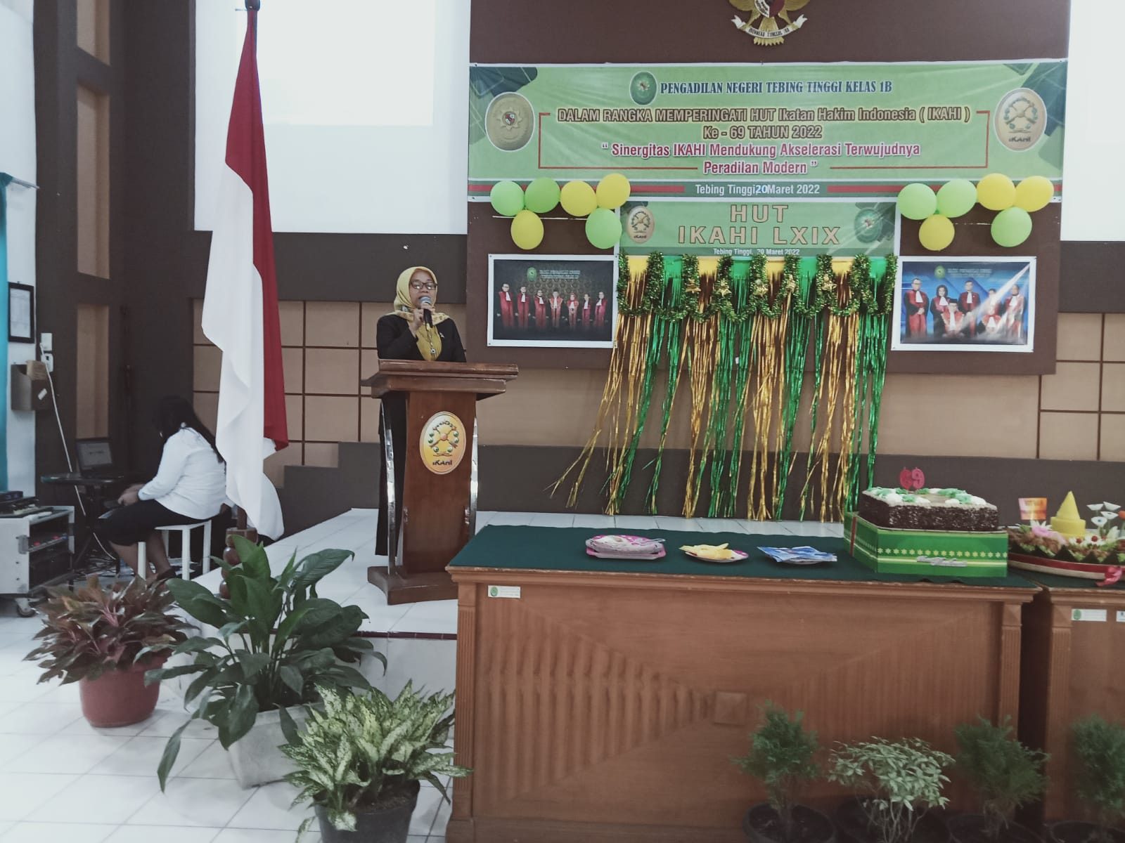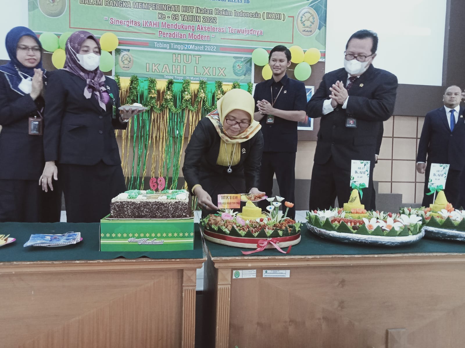 Tebing Tinggi. Senin, 21 Maret 2022. Hari ini, Ketua Pengadilan Agama Tebing Tinggi (Dr. Hj. Devi Oktari, S. HI., M.H.) menghadiri Acara Hari Ulang Tahun Ikatan Hakim Indonesia (IKAHI) yang ke-69 tahun yang berlangsung di Kantor Pengadilan Negeri Tebing Tinggi.