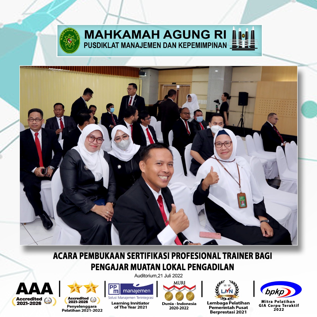 Pelatihan tersebut berlangsung terhitung mulai tanggal 20 s/d 28 Juli 2022 di Kampus Badan Litbang Diklat Hukum dan Peradilan Mahkamah Agung RI yang terbagi dalam beberapa Kelas yaitu Kelas A, B, C dan D.(itpattd)