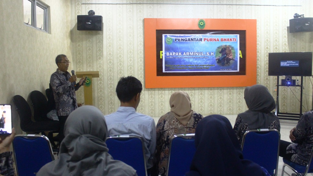 Tebing Tinggi. Jumat, 29 Juli 2022. Pengadilan Agama Tebing Tinggi mengadakan Pengantar Purna Bakti Kasubbag Pelaporan dan TI Bapak Arminul S.H. Acara Purna Bakti dilaksanakan pada pukul 15.30 Wib di Ruang Rapat Pengadilan Agama Tebing Tinggi.