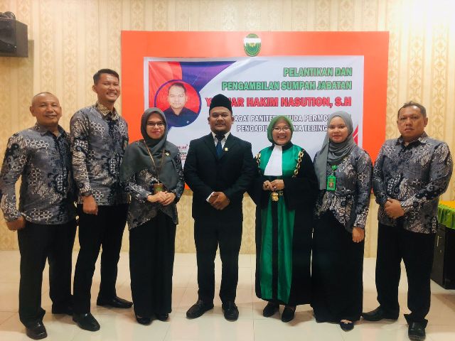 Acara Pelantikan dimulai pada pukul 9 pagi di Ruang Rapat Pengadilan Agama Tebing Tinggi dan berjalan dengan khidmat. Dihadiri Seluruh Pegawai Pengadilan Agama Tebing Tinggi. Kemudian ditutup dengan pengarahan dari Ketua Pengadilan Agama Tebing tinggi.(itpattd)