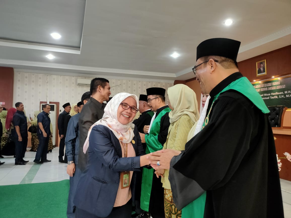 Pelantikan dan Pengambilan Sumpah yaitu Hakim Tinggi Pengadilan Tinggi Agama Medan (Drs. H. Ahmad Musa Hasibuan, M.H. dan Drs. H. Muhammad Taufik, S.H., M.H.), Ketua Pengadilan Agama Medan, Ketua Pengadilan Agama Lubuk Pakam dan Ketua Pengadilan Agama Binjai. Dihadiri oleh Ketua Pengadilan Agama Tebing Tinggi Ibu Dr. Hj. Devi Oktari, S.HI., M.H. bersama dengan Ketua Pengadilan Agama Se-Sumatera Utara. (itpattd)