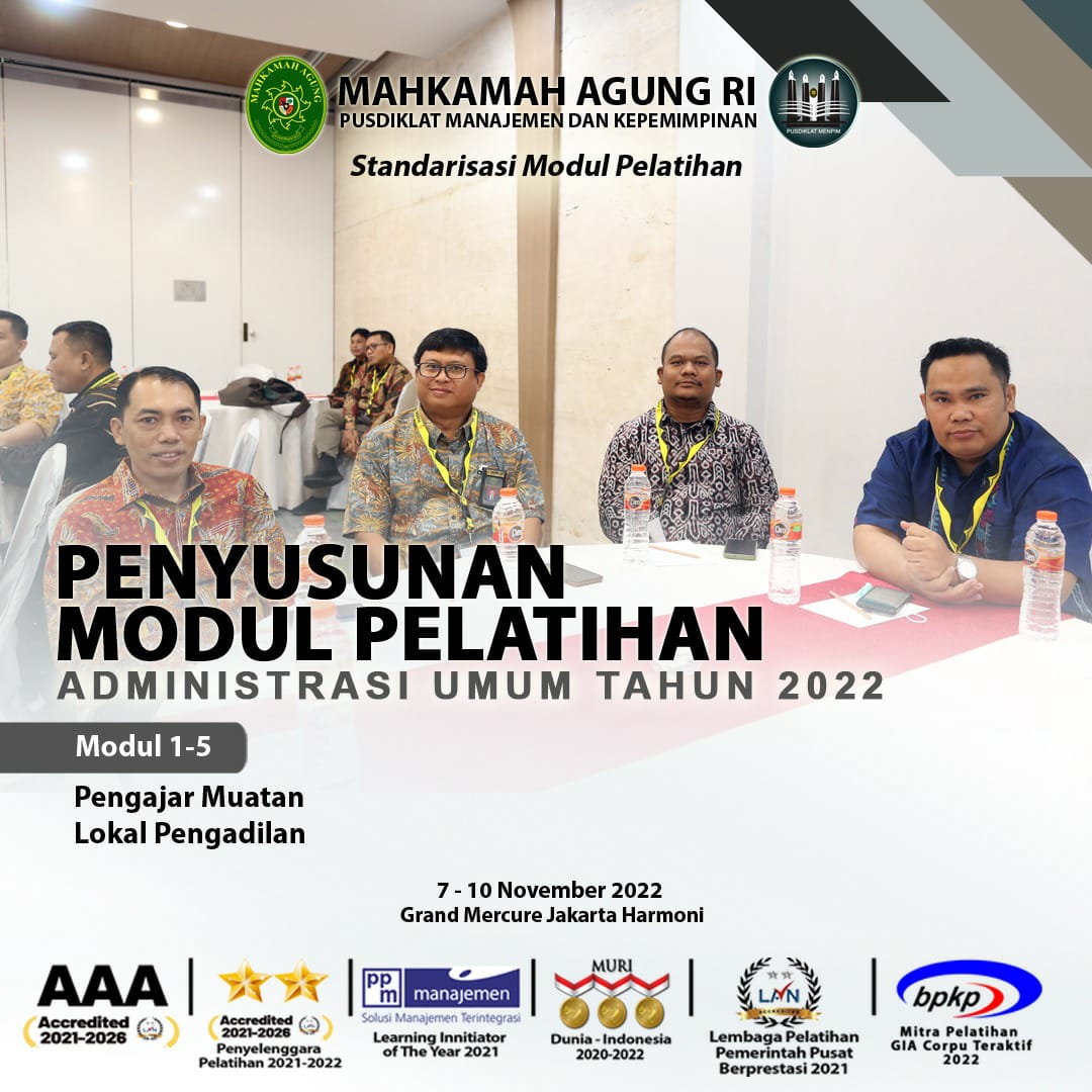 Tebing Tinggi. Rabu, 09 November 2022. Panitera Muda Permohonan Pengadilan Agama Tebing Tinggi (Yanuar Hakim Nasution, S. H.) mengikuti Rapat Penyusunan dari Pengajar Muatan Lokal Modul 1 s.d 5 yang tediri dari Modul Rumpun Keuangan, Rumpun Perencanaan, Rumpun SDM, Rumpun Kepemimpinan, dan Rumpun Manajemen pada Pusdiklat Manajemen dan Kepemimpinan Mahkamah Agung RI.